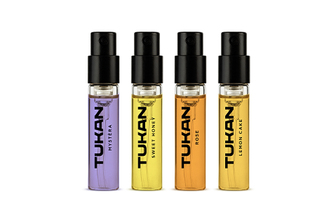 Entdecken Sie Ihren Signature-Duft mit dem Tukan Fragrance Signature Set. Dieses exklusive Entdeckerset enthält vier 3-ml-Parfums – Lemon Cake, Sweet Honey, Rose und Mystèra (in Zusammenarbeit mit Ehab Ajami kreiert).